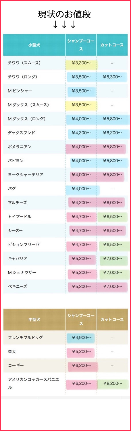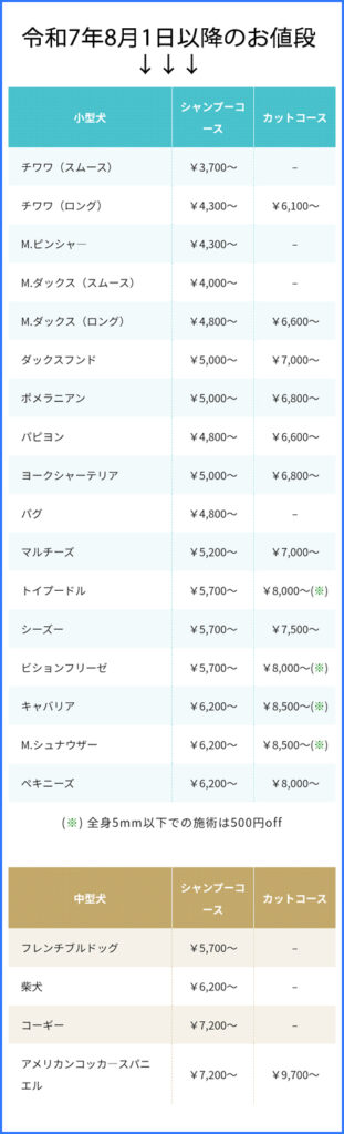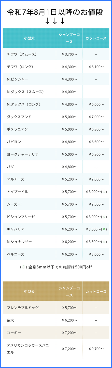 8月1日以降のトリミングから新価格を適用させていただきます。